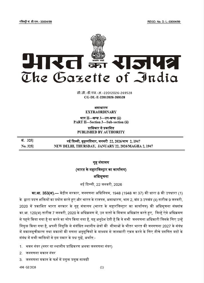 यह डेटा देश की जनसांख्यिकीय संरचना, सामाजिक विविधता और आर्थिक स्थिति का आधिकारिक आधार बनेगा।